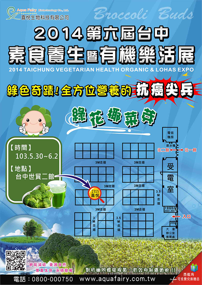 本公司將於5/30-6/2參加台中世貿2014素食養生有機樂活展 2014,05,16 http://tc-veg.tw.tranews.com/ 「台中素食養生暨有機樂活展」網頁訊息 「台中素食養生暨有機樂活展」粉絲專頁 上一則 回最新消息總覽頁 下一則